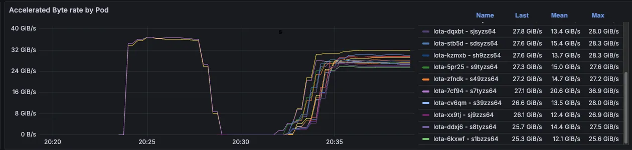Since March, we have made a number of optimizations in the way that LOTA reads and writes data, which resulted in an approximately 17% performance improvement in throughput. This increase in throughput was verified by recent LOTA testing we did with H100 nodes to compare to our March H100 test results.
