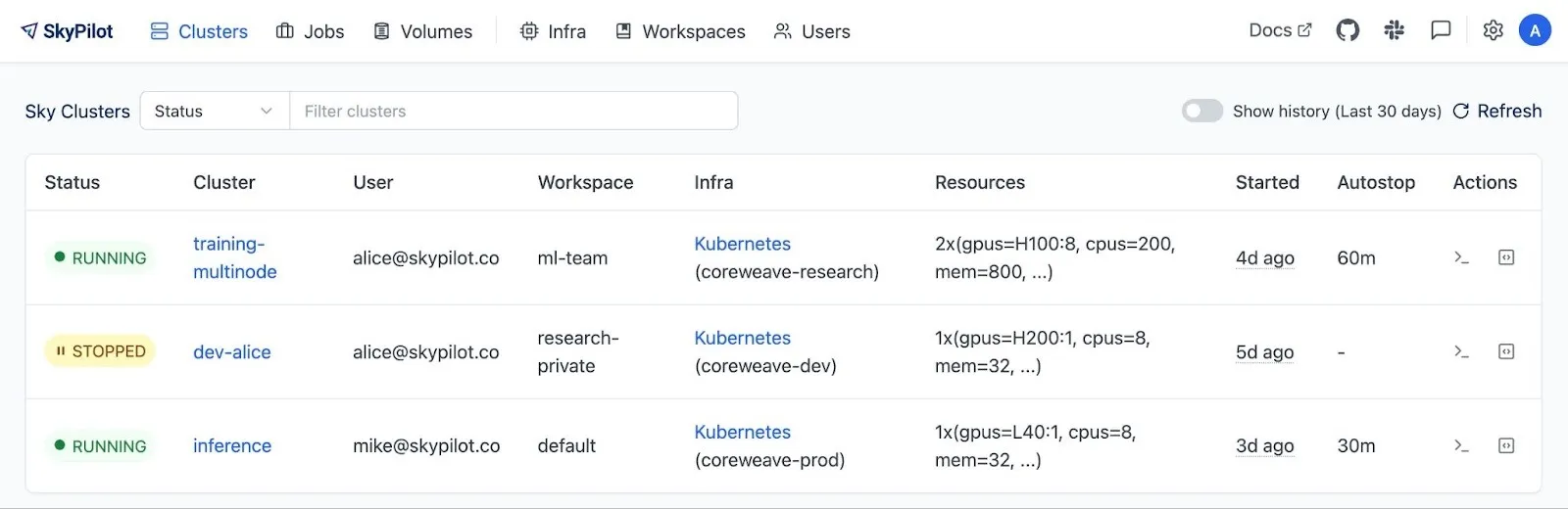 CoreWeave and SkyPilot already powers production workloads for a growing roster of customers, including multiple leading AI-native pioneers and startups running jobs across hundreds of GPUs.